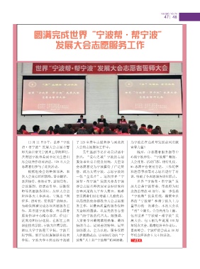 次大会设有组织联络、语言翻译、 一张“金名片”。这次世界“宁 训,明确了各志愿服务岗位职责。